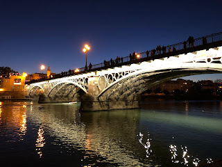 We were in Sevilla in December and on our meanderings towards a flamenco show, we walked along a beautiful river with beautiful lit up bridges. Adorning the streets are amazing Christmas lights and decorations all over the place. We enjoyed seeing that and feeling the Christmas spirit with the Spaniards and other travelers.